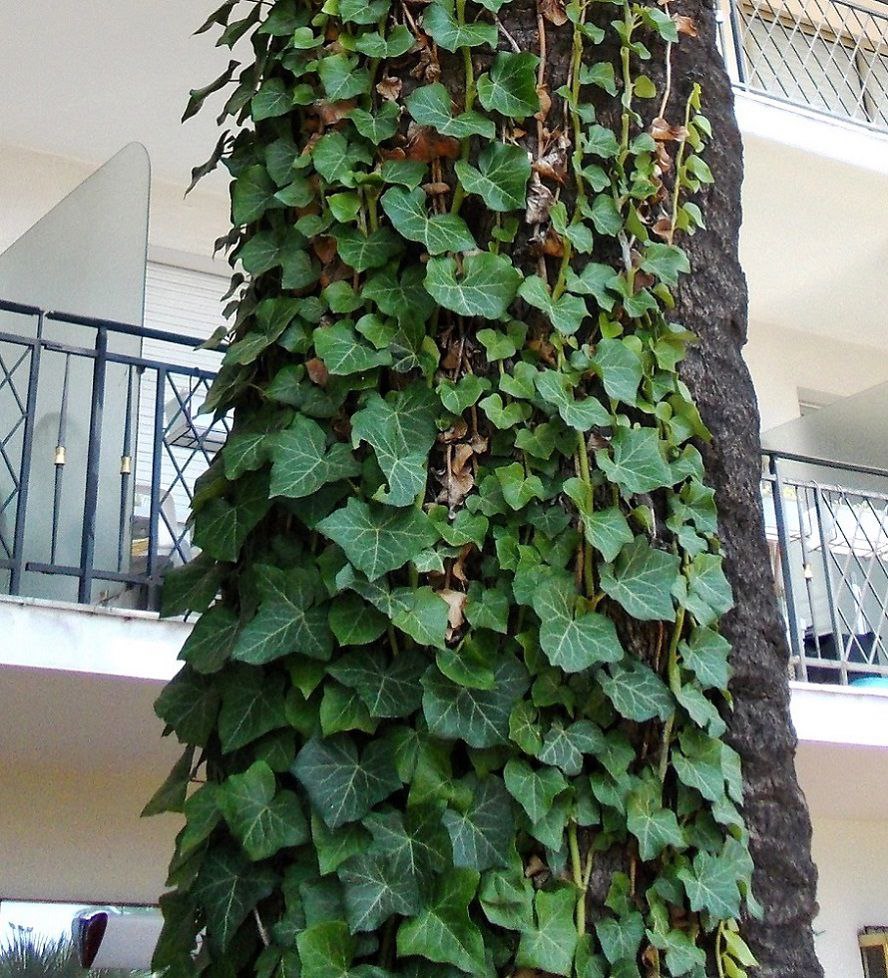 вечнозелёный вьющиейся кустарник, цепляющиеся воздушными корнями. Соцветия мелких жёлто-зелёных цветков сменяются, как правило, чёрными ягодами. Листва цветоносных побегов часто менее глубоко рассечённая, чем у бесплодных вьющихся побегов.