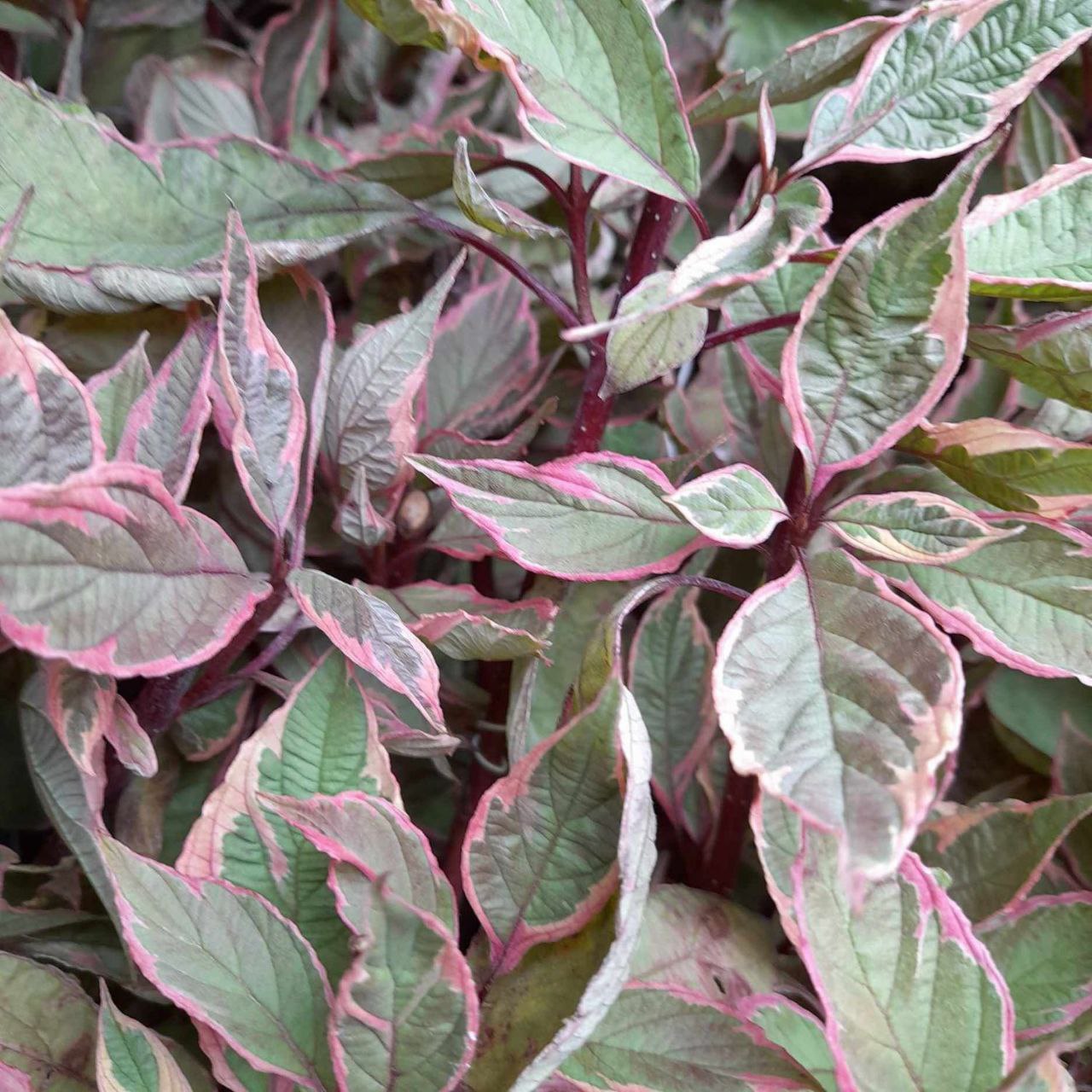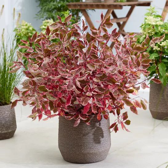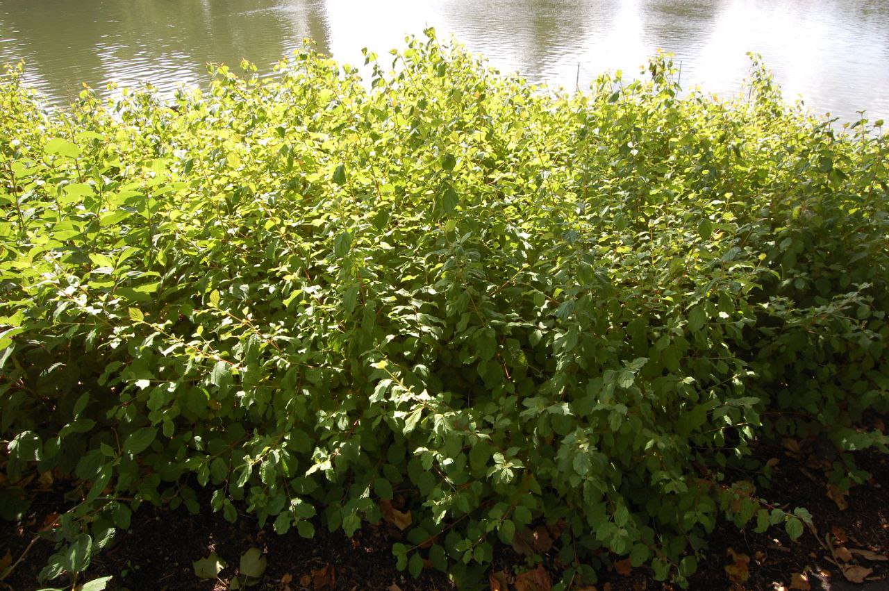 Компактный округлый кустарник высотой и шириной до 1 м. с тонкими декоративными побегами. Кора в зимнее время красно-пурпурного цвета. Листья узкие волнистые по краю, летом зелено-коричневые, снизу - сизовато-белые. Осенью окрашиваются в фиолетово-красный цвет. Цветки мелкие, белые. Цветет в первой половине лета и повторно в начале осени. Плоды белые, мелкие, круглые. Хорошо переносит стрижку , подходит для живых изгородей и бордюров