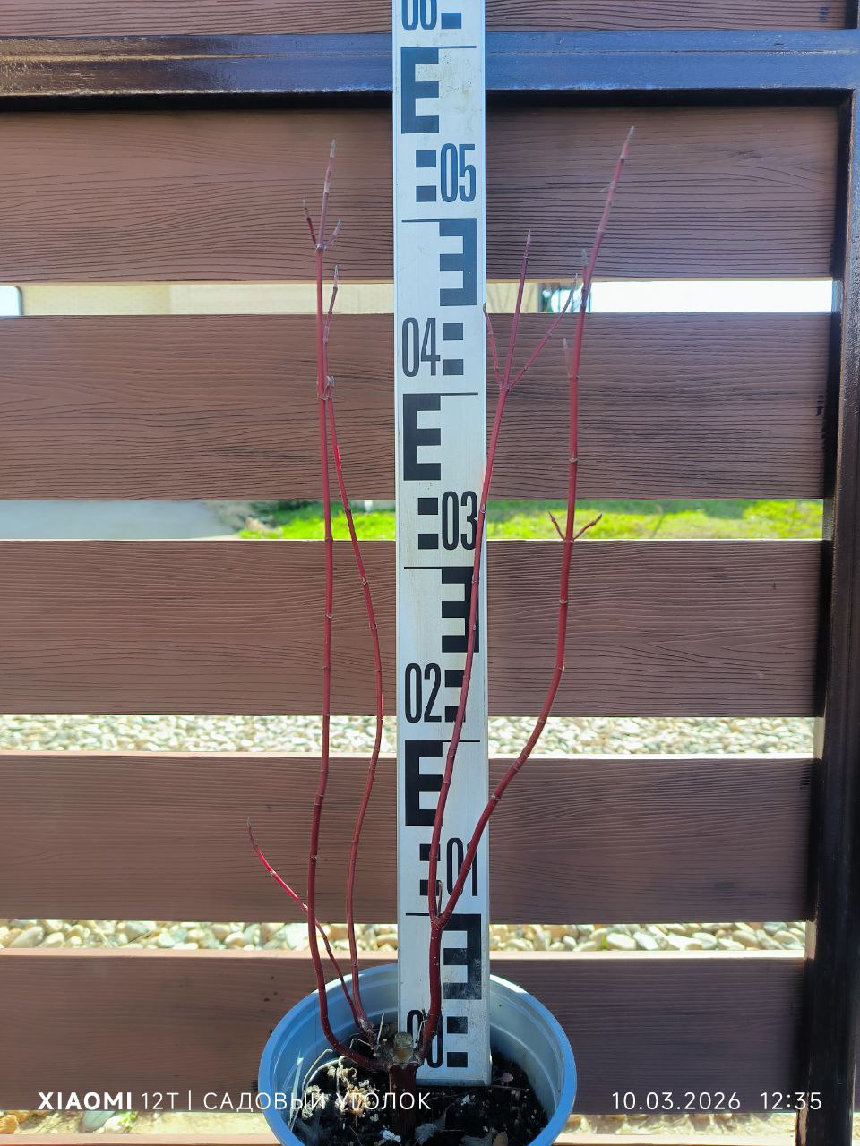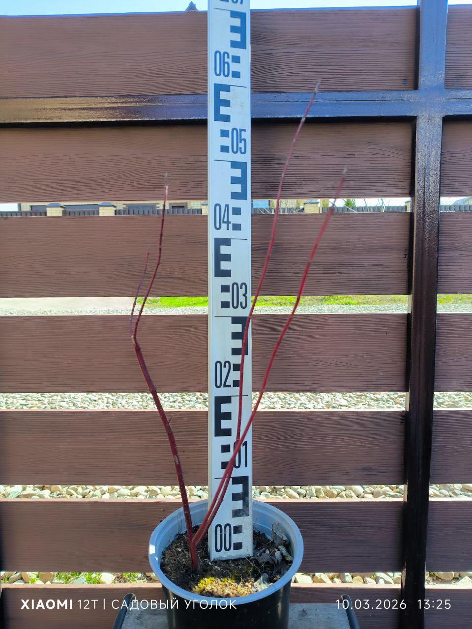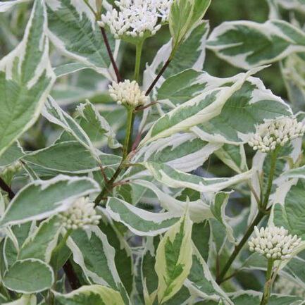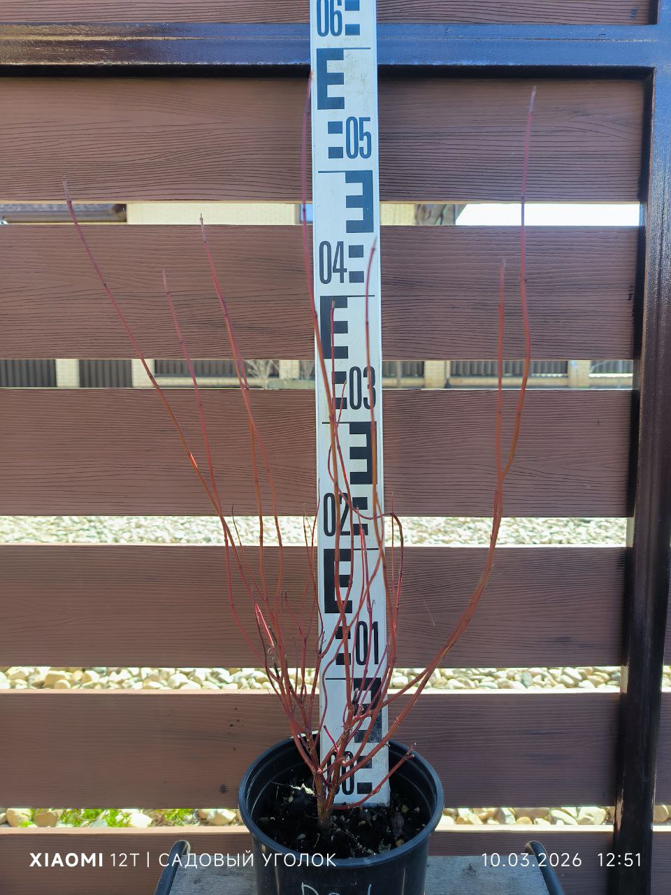 быстрорастущий кустарник с тонкими декоративными побегами. Высота 2-3 м, ширина кроны 3-5 м. Кора на молодых побегах оливково-зеленая, к осени становится кораллово-красной или темно-красной с сизым налетом, на более старых - кора красно-бурая или сероватая. Цветки мелкие, белые, собраны в многочисленные щитковидные соцветия. Цветет в первой половине лета и повторно в начале осени. Листья серо-зеленые с белой каймой, несколько морщинистые, снизу - сизовато-белые. Осенью окрашиваются в фиолетово-красный цвет. Хорошо переносит стрижку