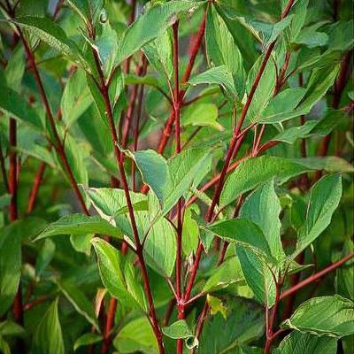 Листопадный куст высотой и шириной до 200 см. Однолетние побеги зимой блестящие, в нижней части светло-оранжево-жёлтые, в верхней – красные, на солнечной стороне полностью красные. Листья блестящие, зелёные, молодые - слегка бронзового цвета, осенью – жёлтые,красные .Соцветия маленькие. Цветки белые, цветение в июне. Хорошо переносит стрижку, подходит для живых изгородей