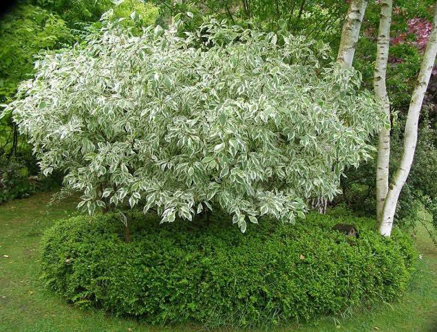 кустарник-хамелеон, меняющий цвет в зависимости от сезона. Весной листья окрашены в зеленый цвет с бело-розовой каймой, летом зеленый сменяется пурпурно-красным цветом. Сами побеги также яркие красные. В высоту достигает 1–2 м. Хорошо поддаётся стрижке.Куст раскидистый и занимает много места. Листья округлые, густые, опадают на зиму. Цветки белого дерена мелкие, не особенно примечательные, появляются в мае-июне. Плоды маленькие, шаровидные, белого цвета, несъедобные.