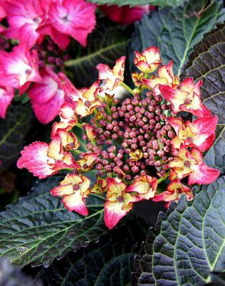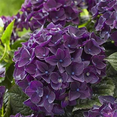Это первая повторноцветущая гортензия с постоянно темными листьями. Образует округлый куст высотой и шириной 0,9-1,5 м.