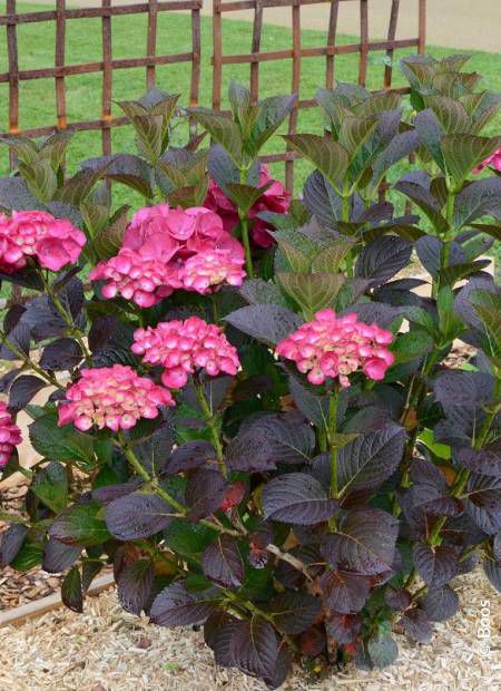 Эта новая гортензия отличается яркими цветами, которые хорошо переносят утреннее солнце. Ее молодая пурпурная листва зеленеет летом, а затем краснеет осенью. Ее прочные и вертикальные ветви несут крупные соцветия в шарах ярко-карминового цвета. Это компактный куст, хорошо разветвленный, с очень правильной формой роста и быстрым ростом. Идеально подходит как для бордюров, так и для контейнеров.
