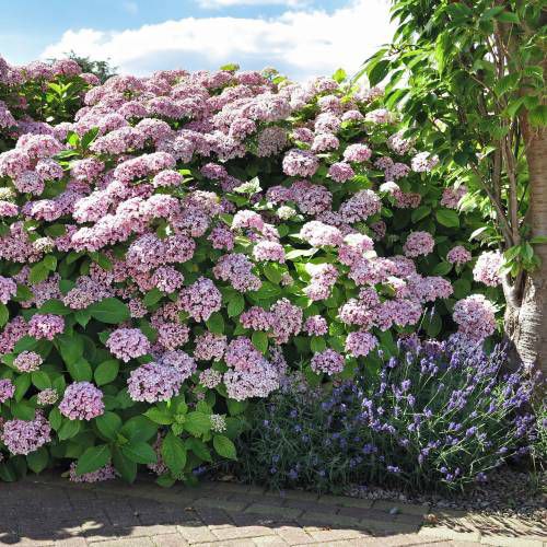 Гортензия 'Ayesha' восхищает своими неповторимыми цветами, напоминающими облака серебристо-голубого или нежно-розового оттенка, в зависимости от кислотности почвы.
