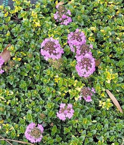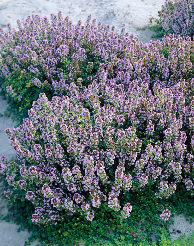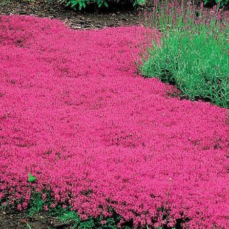 Вечнозеленые коврики из крошечных темно-зеленых листьев производят восхитительные розово-фиолетовые цветы в течение всего лета. Всего 5-10 сантиметров в высоту, растение густо покрыто крошечными, темно-зелеными, блестящими листьями, которые очень ароматны, если их раздавить — посадите их между камнями мостовой и наслаждайтесь их ароматом каждый раз, когда проходите мимо. Широко используется на кухне, а также в декоративных целях!