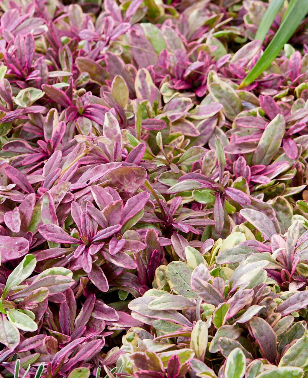 почвопокровное многолетнее растение с яркой окраской листьев , высота составляет 10–15 см. Листья узкие, сочетают в себе зелёные, кремовые и розовато-фиолетовые оттенки. Благодаря медленному, но густому разрастанию образует плотный ковёр. Цветет весной фиолетово-сими цветками.