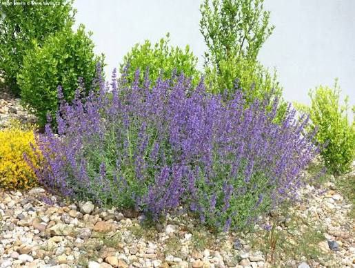 Многолетнее ароматное растение высотой до 40 см с очень длительным и обильным цветением. Похож на куст лаванды с лавандово-голубыми соцветиями. После первого цветения в июле растение срежьте наполовину, оно зацветет снова и будет расти компактнее.