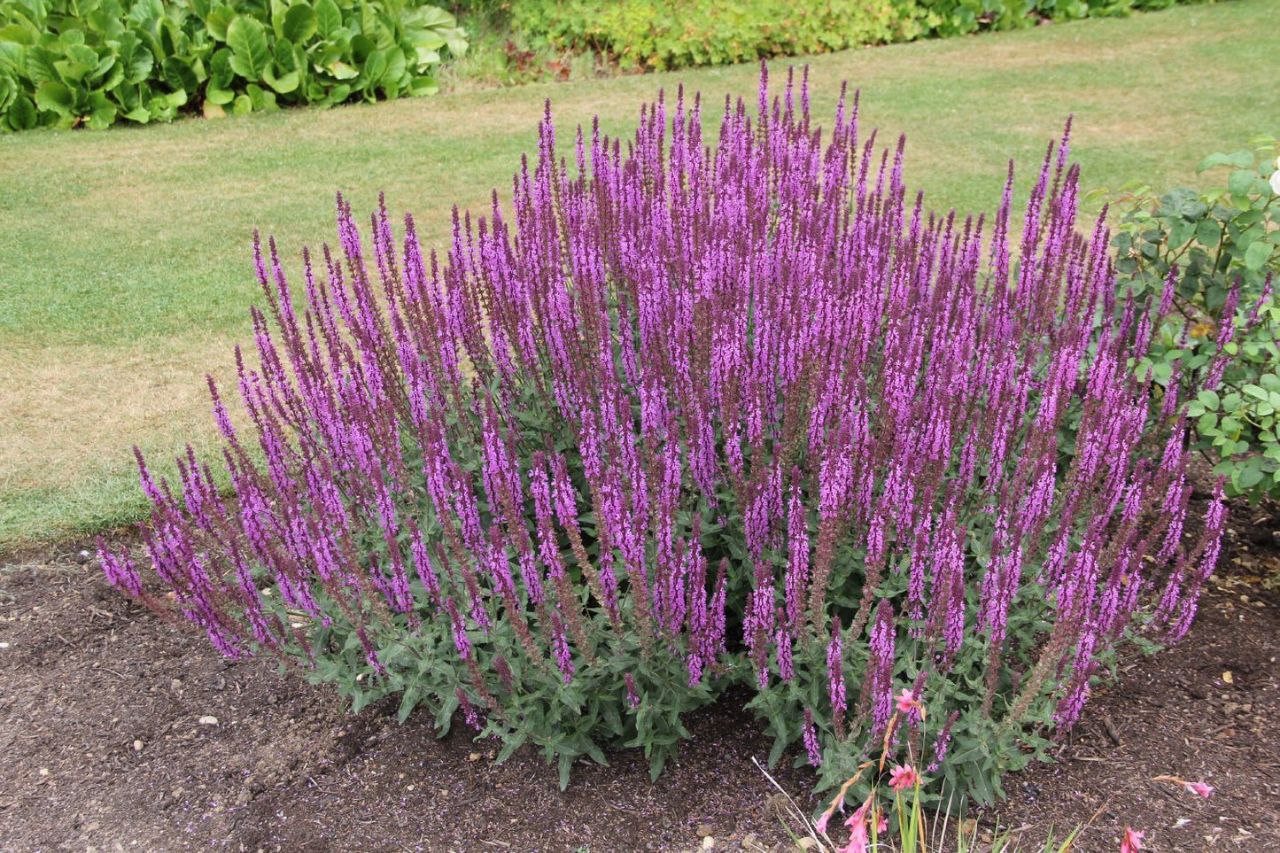 яркий представитель рода Шалфей. Это растение средней величины имеет многочисленные побеги, которые оканчиваются разветвленными соцветиями. Цветы крупные, окрашены в сиренево-розовый цвет, распускаются в июле-августе. Если своевременно удалить отцветшиеся соцветия, то это провоцирует на повторное цветение растения. Высота куста 60 см