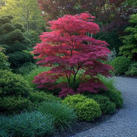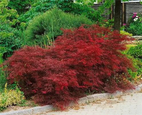 медленнорастущий, компактный японский клен, славящийся своей густой, прямостоячей кроной и уникальными скрученными темно-зелеными листьями, которые осенью становятся ярко-оранжевыми/красными. Достигает 2-3 м в высоту, идеально подходит для малых садов и контейнеров. Предпочитает полутень и влажную, хорошо дренированную почву