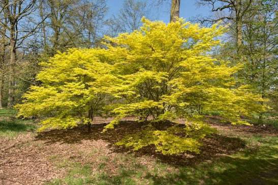 медленнорастущий лиственный кустарник до 3 м высоты. Листья меняют окрас с желтого с темно-оранжевым краем весной, до желто-зеленого летом и золотистых осенью. Предпочитают полутень, на солнце могут обгорать листья. Предпочитает влажные, хорошо дренированные почвы, в засушливый период необходимо увлажнение кроны. Идеально подходит для небольших садов или для выращивания в контейнере . К 10-ти годам высота примерно 160 см.