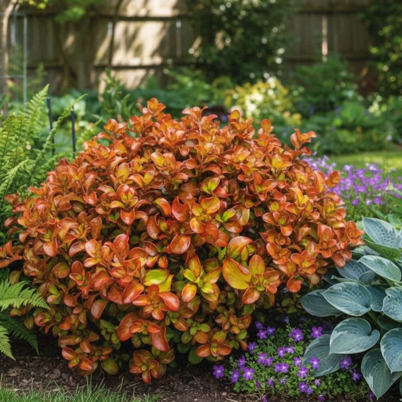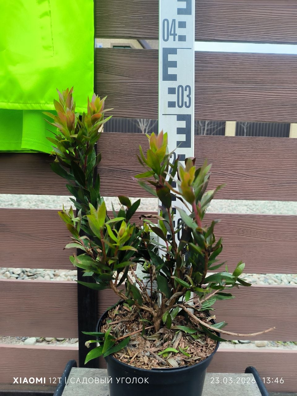небольшой и красочный кустарник с ярко-красными новыми побегами на темной старой листве. Это прекрасное контрастное растение. Вырастает примерно до 1.5 метров в высоту и ширину.