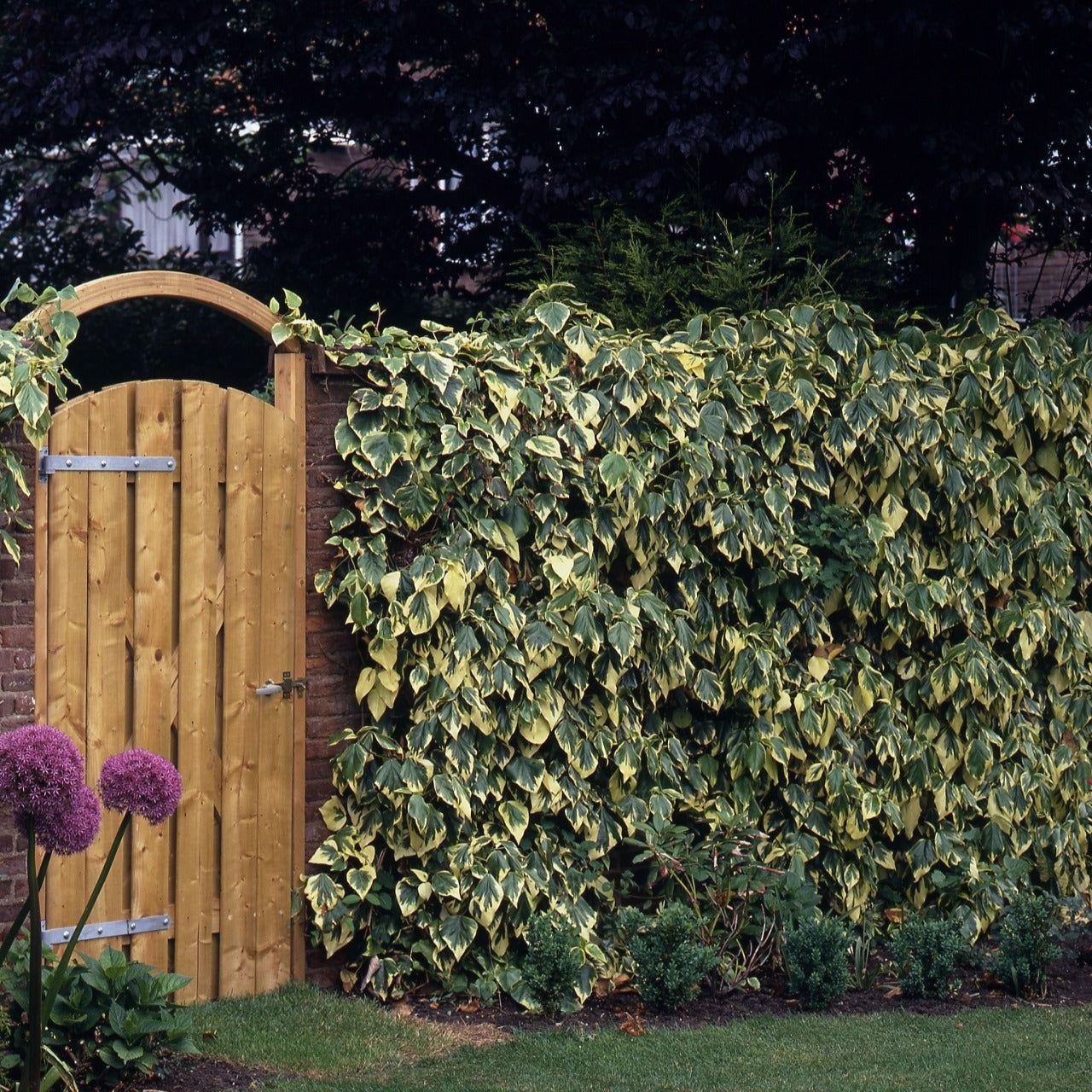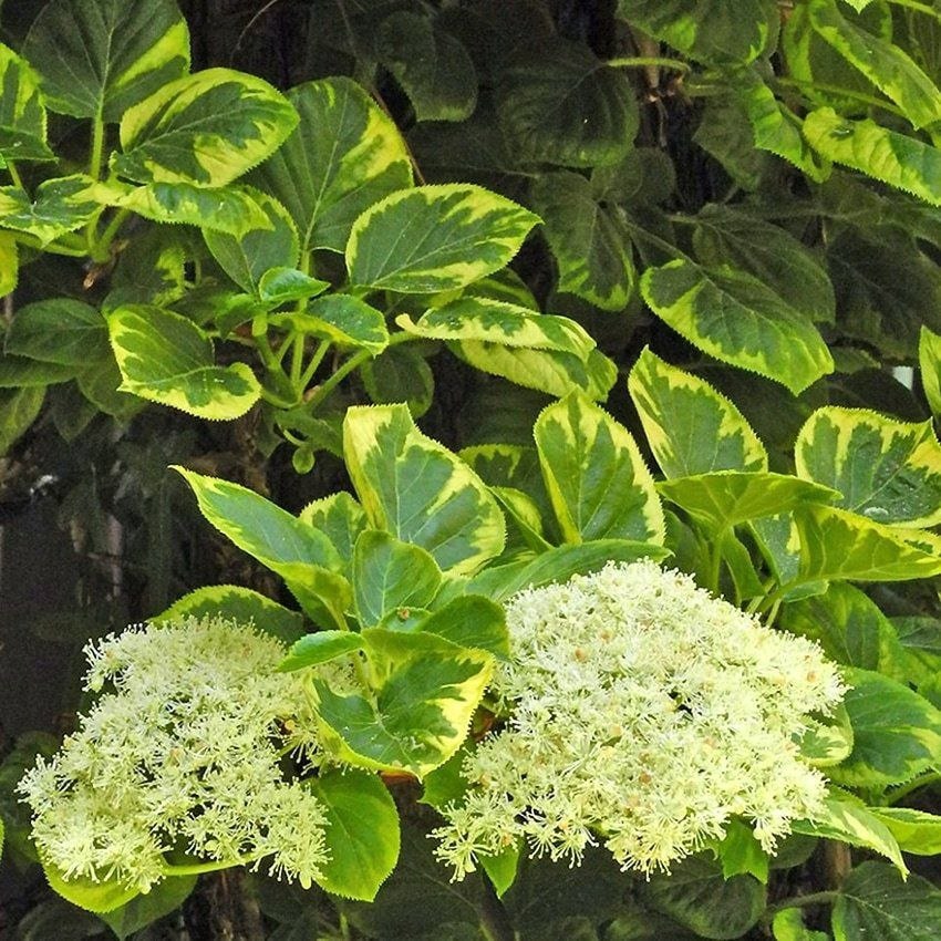 Один из новых сортов гортензии черешковой, с появлением стал пользоваться большой популярностью, от основной формы отличается более декоративной листвой с неравномерной желто-кремовой или жёлто-зелёной каймой по краю листа. Цветёт меньше видовой гортензии, цветение белое во второй половине лета. Взбираясь по опоре, достигает высоты 8-10 м.