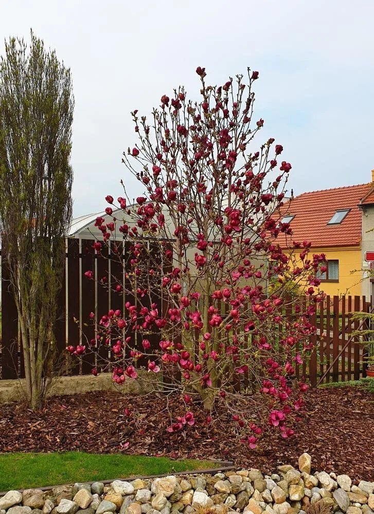 Низкорослый сорт магнолии, с медленным темпом роста, с закругленной формой. Листья темно-зеленые, снизу более светлые. Цветет обильно весной до появления листьев или одновременно с их появлением. Цветы чашеобразные, багрово-розовые, душистые. Через 10 лет достигает около 2,5 м высоты и такой же ширины. Лучше всего растет на солнечном месте. Магнолия для посадки предпочитает плодородную, влажную, гумусную и слегка кислую почву.