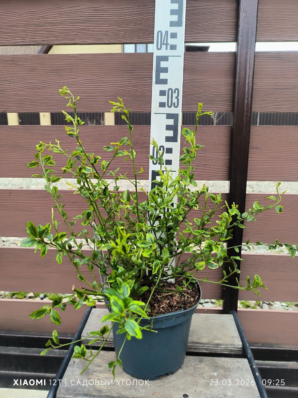 Вечнозеленый кустарник высотой и шириной до 2-3 м, с дугообразными ветвями и мелкими, блестящими, темно-зелеными листьями. С середины весны до начала лета цветет гроздьями чисто-белых ароматных цветов. Хорошо поддается стрижке , для сдерживания роста