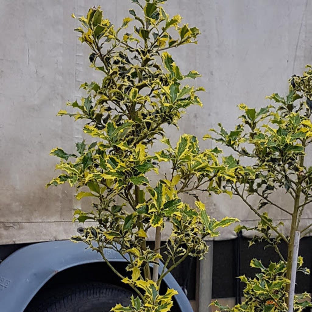 У Golden DJ изысканная вечнозеленая темно-зеленая листва с желтыми зубчатыми краями. Он вырастает до 120 в высоту и 50 см в ширину. Golden DJ — это мутация Ilex aquifolium 'Alaska'. Он хорошо растет на хорошо дренированной, плодородной, песчаной, суглинистой и торфяной почве. Вы можете выбрать место на солнце, в полутени или тени.