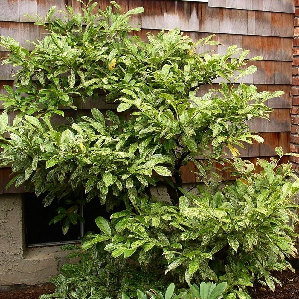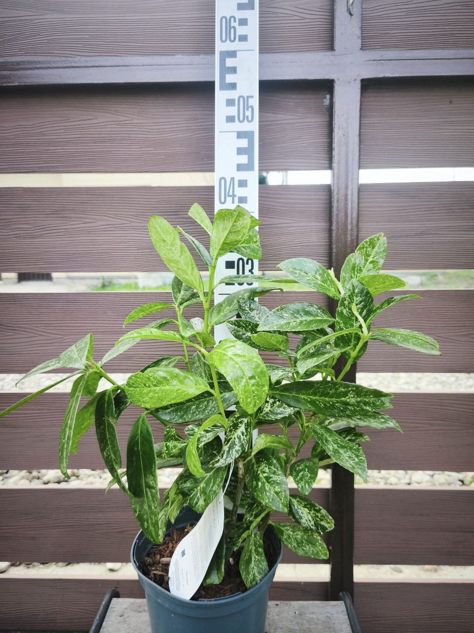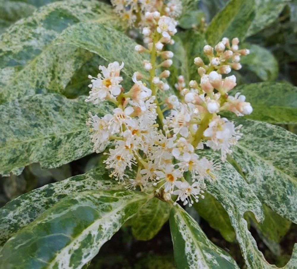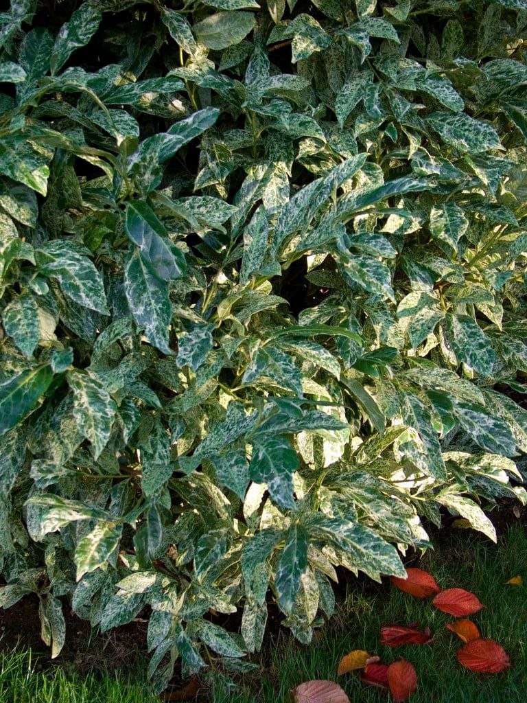 Это крупный, густой, раскидистый кустарник до 200 см , прямостоячей пирамидальной формы с кожистыми, зелёными и серо-зелёными, кремово-белыми мраморными листьями, которые зимой приобретают розовый оттенок. Весной появляются колосовидные соцветия с мелкими, ароматными, белыми цветами, за которыми следуют красные ягоды, чернеющие осенью. Неприхотливое растение, хорошо переносит сильную обрезку.