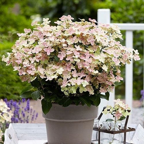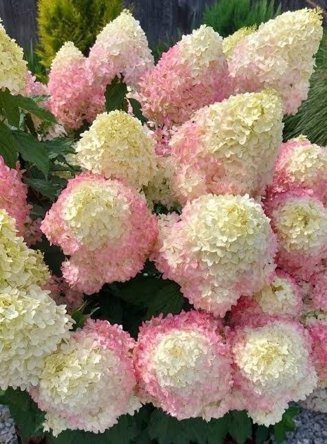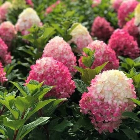 Вы будете наслаждаться красотой этой гортензии. Цветы постепенно меняют цвет снизу вверх, образуя великолепное сочетание белого, светло-розового и насыщенного красного цвета Hawaiian Punch! В течение лета, во время цветения, вы увидите, как эти четыре цвета смешиваются, создавая поистине незабываемое зрелище. Высота до 150 см . Цветы крупные до 30 см.