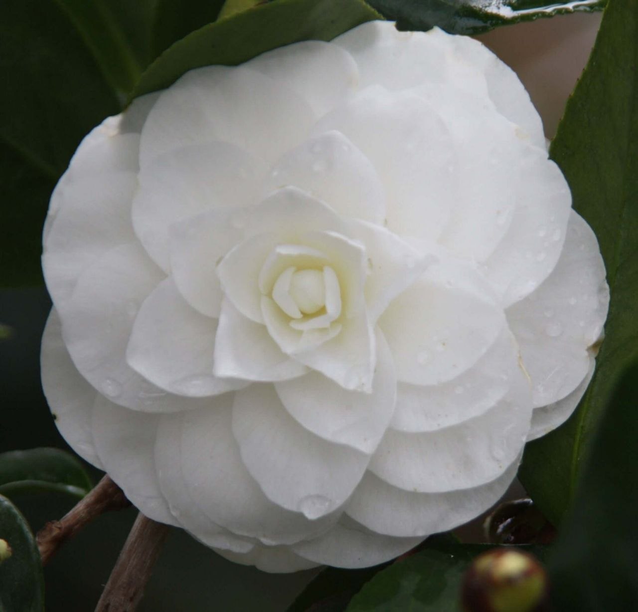 вечнозеленый кустарник среднего или большого размера с плотной, узкой, вертикальной, густой кроной. Высотой 2.5-4 метра к 20 годам . Листья от яйцевидных до эллиптических, блестящие и темно-зеленые. Цветки среднего размера до 8 см в диаметре. махровые, белые, иногда с розовым румянцем, более глубоким на внешних лепестках, появляются в конце зимы и начале весны. Это растение должно иметь определенно кислую почву и должно быть посажено вдали от холодных, сухих ветров и солнца,