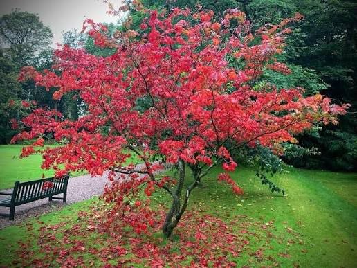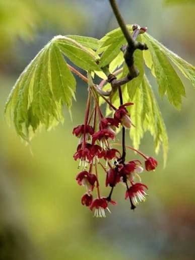 Цветет зелеными цветами, осенью приобретает оттенки розового и ярко-красного.