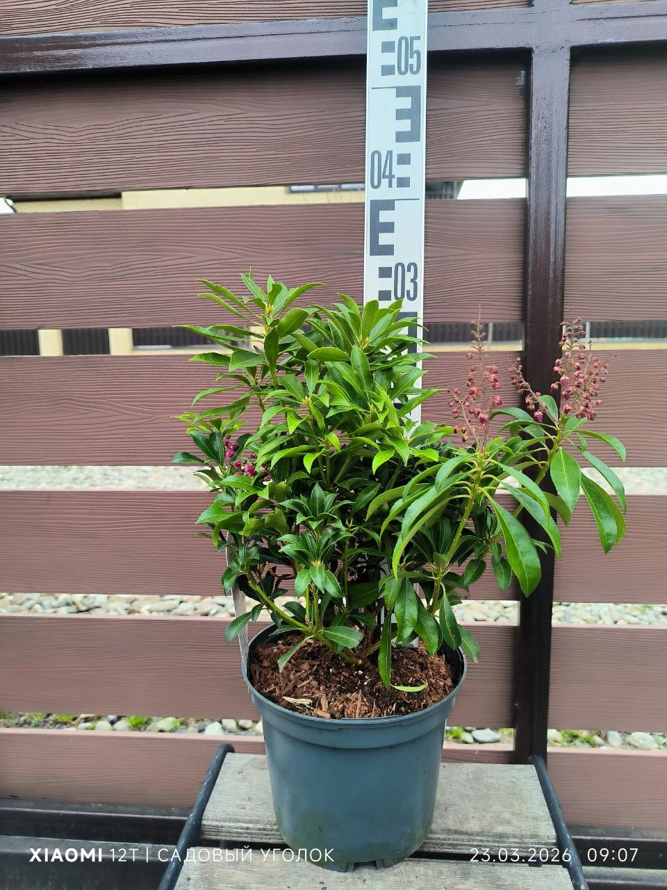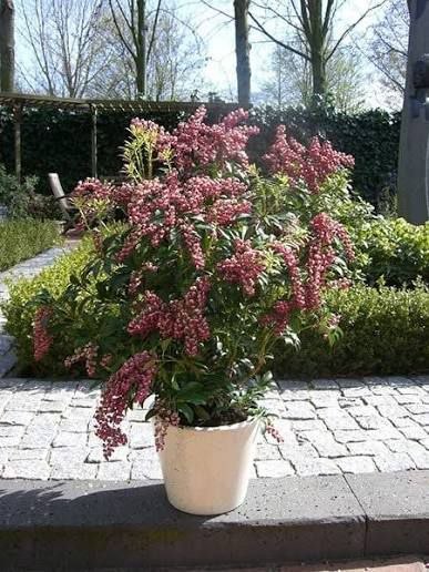 Исключительно красивый пиерис с вертикальным, полным букетом с крупными розовыми цветами. Пиерис обильно цветет с апреля и вырастает примерно до 1,5-2 м в высоту и 75 см в ширину. Ранней весной на нем появляются многочисленные свисающие грозди (кисти) малиновых цветов, похожих на ландыши. Вечнозеленые листья ланцетные, средне-зеленые и блестящие.