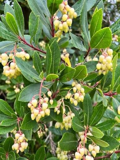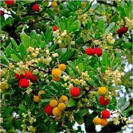 Изящно разветвленный вечнозеленый кустарник до 2 метров высотой, с глянцевой темно-зеленой листвой и красивой корой цвета корицы. Массы белых цветов дают яркие, съедобные плоды, похожие на клубнику. Цветы белые или желтоватые, собраны в рыхлые метёлки. Имеет особенности в развитии цветочных почек: с мая по октябрь формируются соцветия, далее в течении зимы-весны формируются части цветков.В середине осени на веточках образуются многочисленные съедобные ягоды около 1 см. в диаметре. Похожие на землянику. Подходит для выращивания в кашпо.