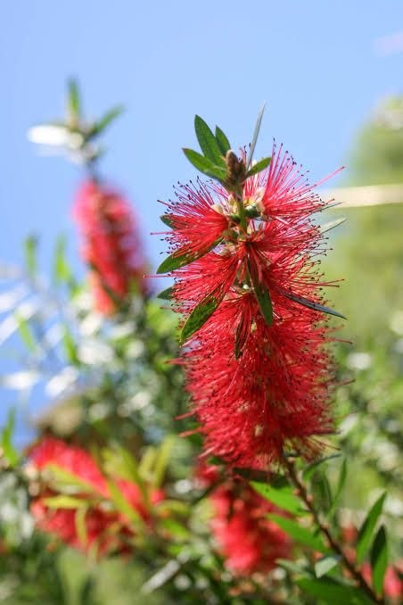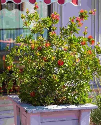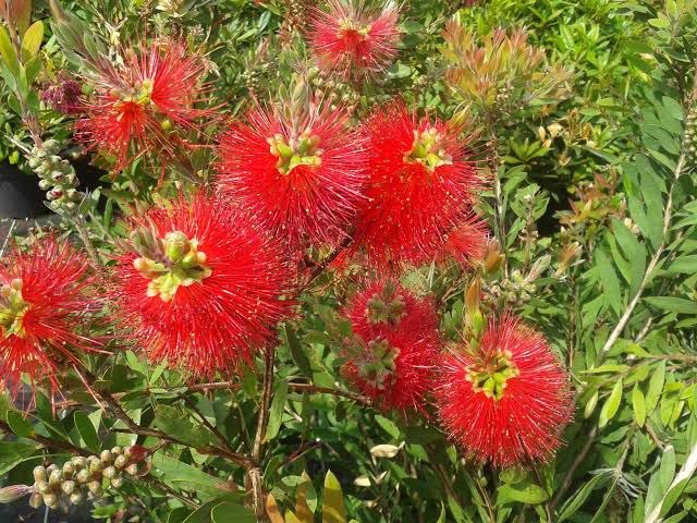 Густой вечнозелёный кустарник с прямостоячими или рыхлыми стеблями, на которых весной появляются узколанцетные, сине-серо-зеленые ароматные листья и колосовидные соцветия красных цветков, напоминающие ёршики для бутылок. Высотой до 50-100 см . Подходит дл выращивания в кашпо