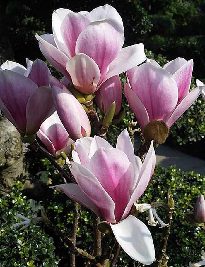 Вечнозеленая магнолия , выделяется своим узким, вертикальным, пирамидальным ростом, что делает ее подходящей для небольших пространств. Ее здоровая, глянцево-зеленая листва очень густая и будет покрыта рубиновыми цветами с весны до начала лета. В конце лета Stellar Ruby удивит еще одной волной цветения ароматными цветами, более бледно-розовыми цветом. Лучше всего себя чувствует на полном или частичном солнце и вырастет до 3-4 м в высоту и 1,5 м в ширину через десять лет. Летнее повторное цветение гораздо более выражено, если растения обрезать после первоначального весеннего цветения - они будут цвести обильно и все еще заложат больше бутонов для обильного весеннего цветения в следующем году. В климате с длинным летом можно провести 2-ю или потенциально 3-ю обрезку верхушек, чтобы способствовать обильному цветению в течение всего лета.