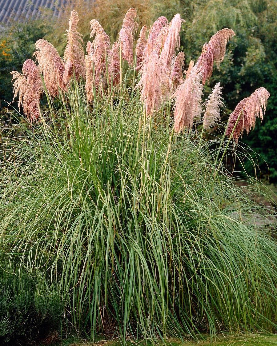 Листья линейные, широкие, жесткие, серо-зеленые, оттянутые на конце. Цветет с августа по октябрь, очень красива благодаря крупным шелковистым метелкам длиной 30—50 см, состоящим из мелких колосков. Высокие растения, с длиной стебля 2—3 метра, образующие очень густые дернины.