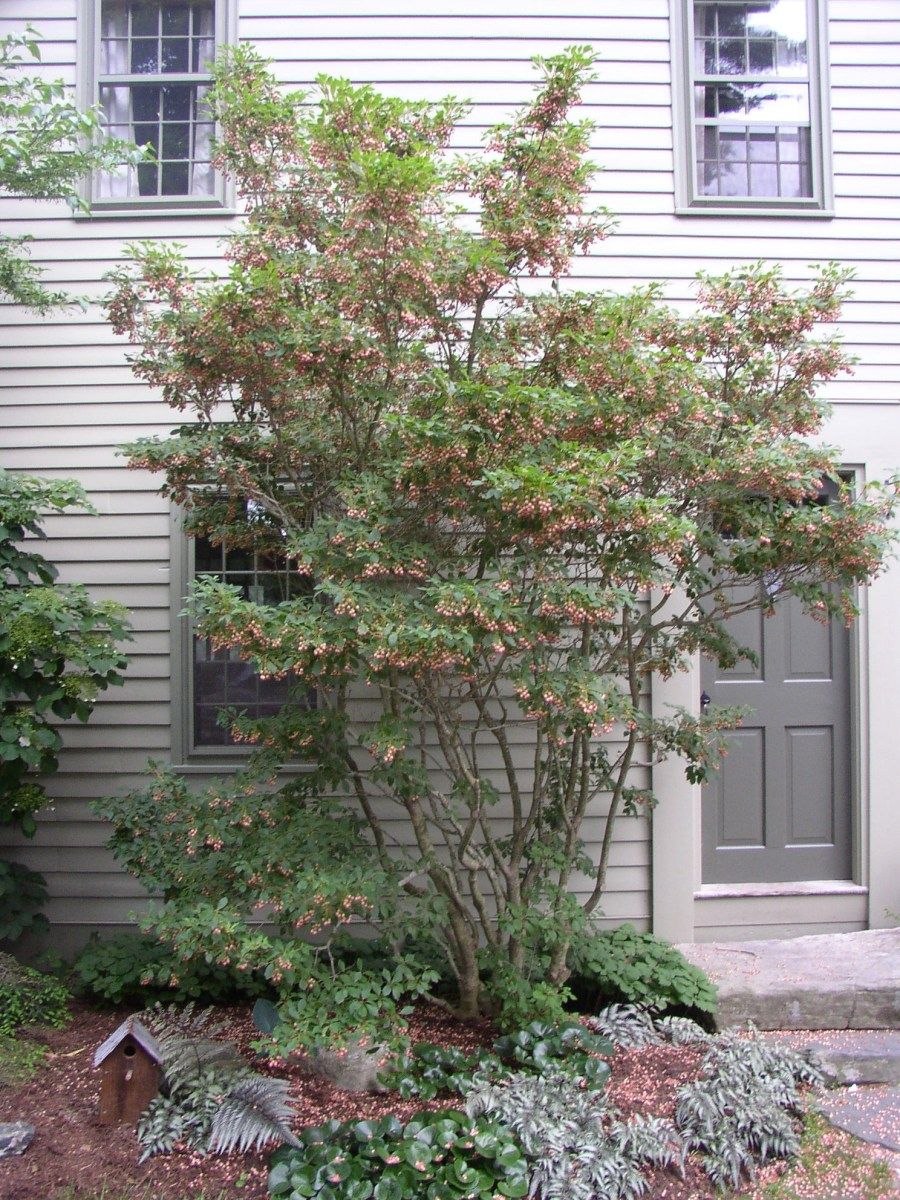 Крупное листопадное дерево с привлекательной кремово-золотистой окраской листьев,высотой до 5 м Листья эллиптической формы, длиной до 10 см. Цветение в мае. Снежно-белые цветки-колокольчики с четырьмя лепестками длиной до 1,5 см, изящно свисающие пучками на тонких цветоножках длиной 1—2 см.Цветение длится 10—15 дней. Нуждается в санитарной обрезке, для сдерживания роста