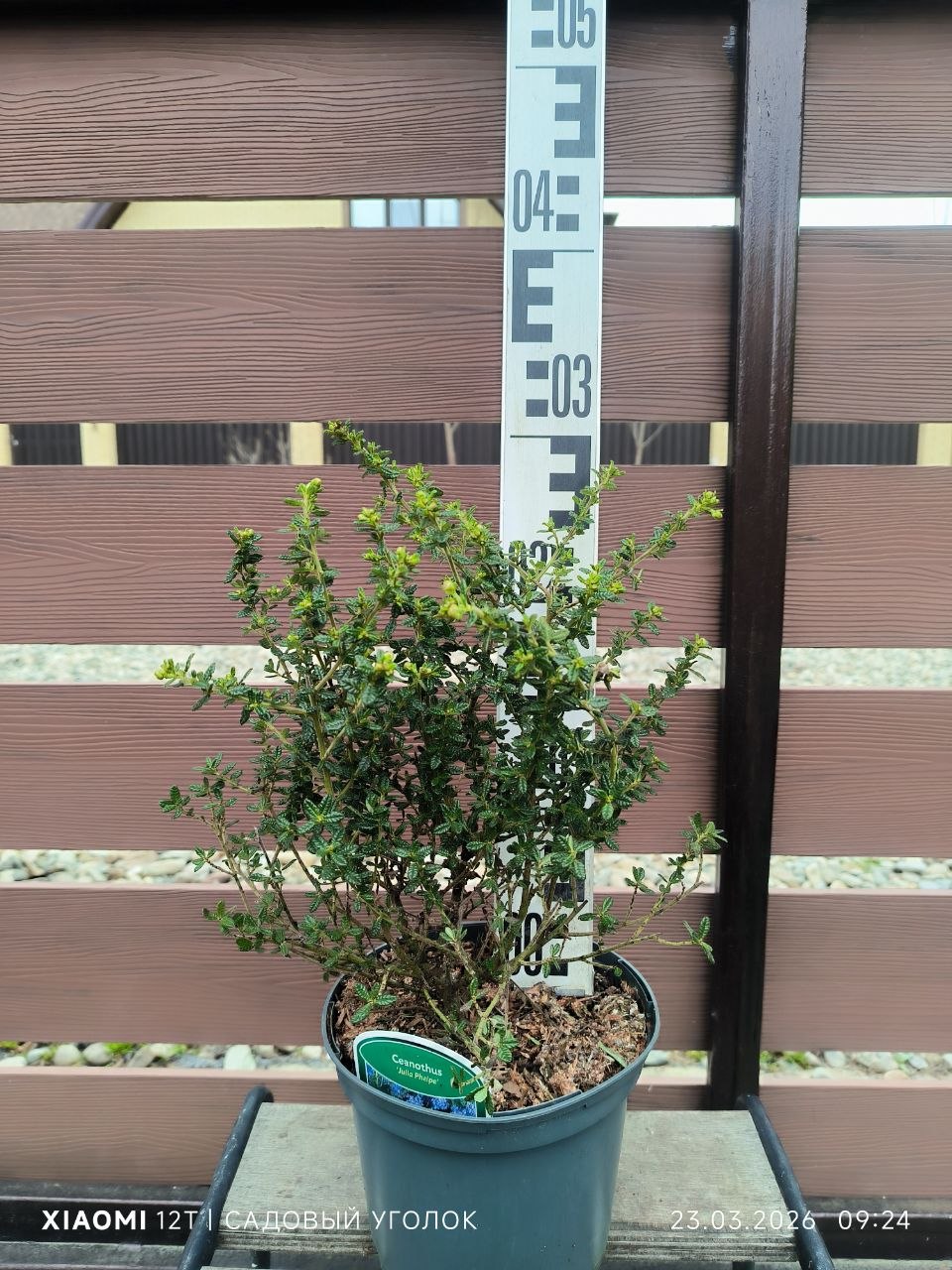 Вечнозеленое растение с желто-зеленой глянцевой листвой и метелками насыщенных голубых цветов. Цветет обильно в конце весны, а так же менее обильно в течение всего лета. Среднего размера. Высота 50-60 см. Образует округлый куст с сильными ветвями. Для придания компактной и плотной формы рекомендуется ежегодная обрезка каждый год после цветения