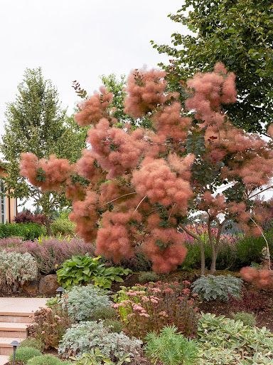 декоративный компактный широкоовальный кустарник, высотой до 3 м , диаметром кроны – 2 м. Листья обратнояйцевидные, темно-багрово-красные. Цветки мелкие розоватые, в метельчатых ажурных соцветиях, цветение в июне, во время плодоношения плодоножки удлиняется и покрываются длинными красноватыми волосками. Для поддержания компактной формы рекомендуется проводить короткую обрезку в конце зимы.