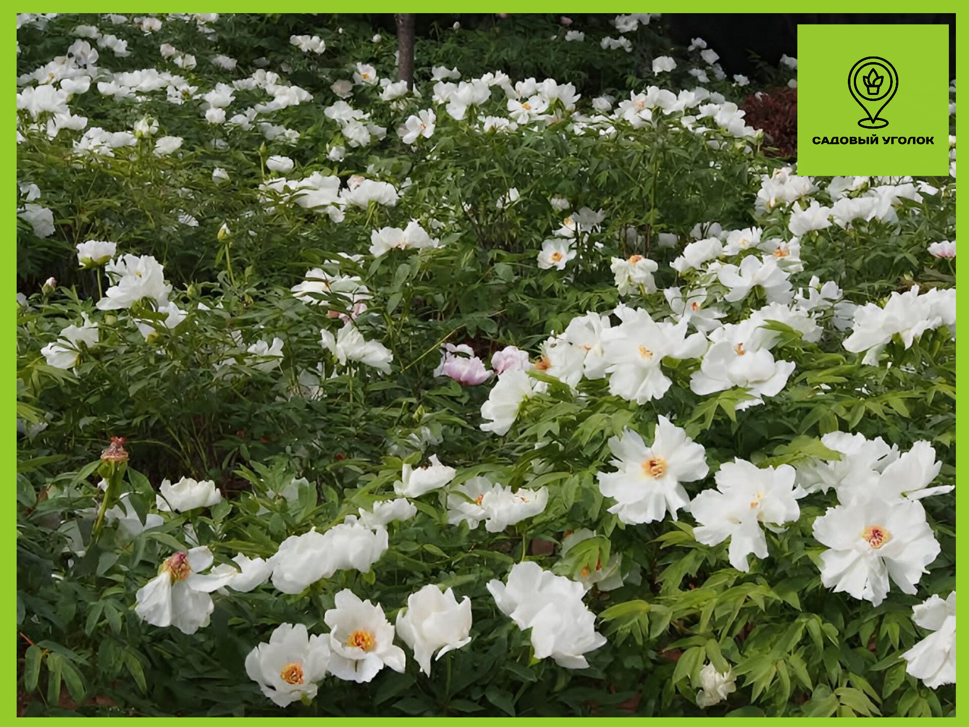листва яркого зеленого оттенка, по форме она дважды- или триждыперистая. На одном кусте Белого Феникса может образовываться от 30 до 70 бутонов. Цветы не махровые, но крупные по размеру, в диаметре могут быть 20-25 см. Белый Феникс полностью оправдывает свое название, его цветы белые, очень светлого оттенка, но с золотистыми тычинками. Аромат у них есть, но он не слишком интенсивный.