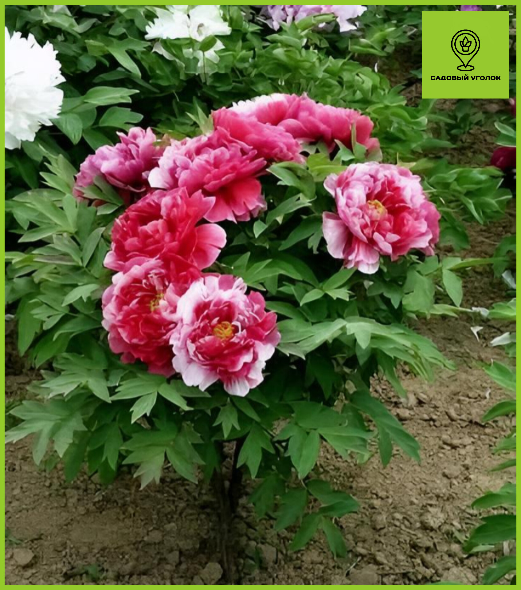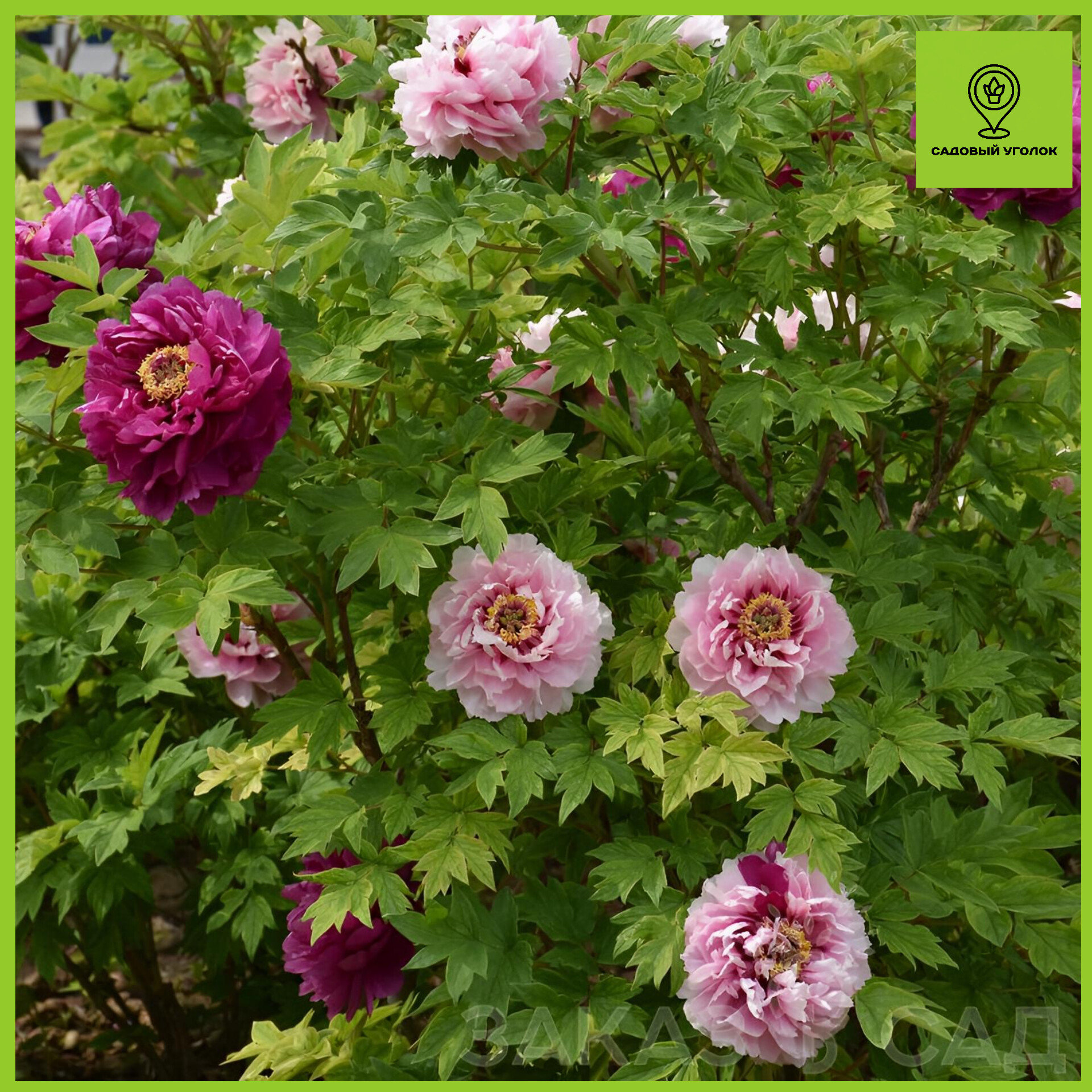 Пион древовидный с его пышной, мелко рассеченной листвой поражает своим великолепием и ярким цветением. Эти ароматные цветы непременно украсят ваш сад! Поздней весной крупные бутоны распускаются, образуя роскошное зрелище из махровых лепестков бархатисто-красного цвета. Древовидные пионы – это долговечный листопадный кустарник, который с возрастом становится только лучше, прекрасно себя чувствует на солнце или в умеренной тени. Цветки пурпурно-красные, коронообразной формы, тёмно-красные у основания, внешние круги лепестков крупнее, внутренние — меньше и волнистые, размер цветка 15 см, с густым ароматом. Высота растения до 150 см.
