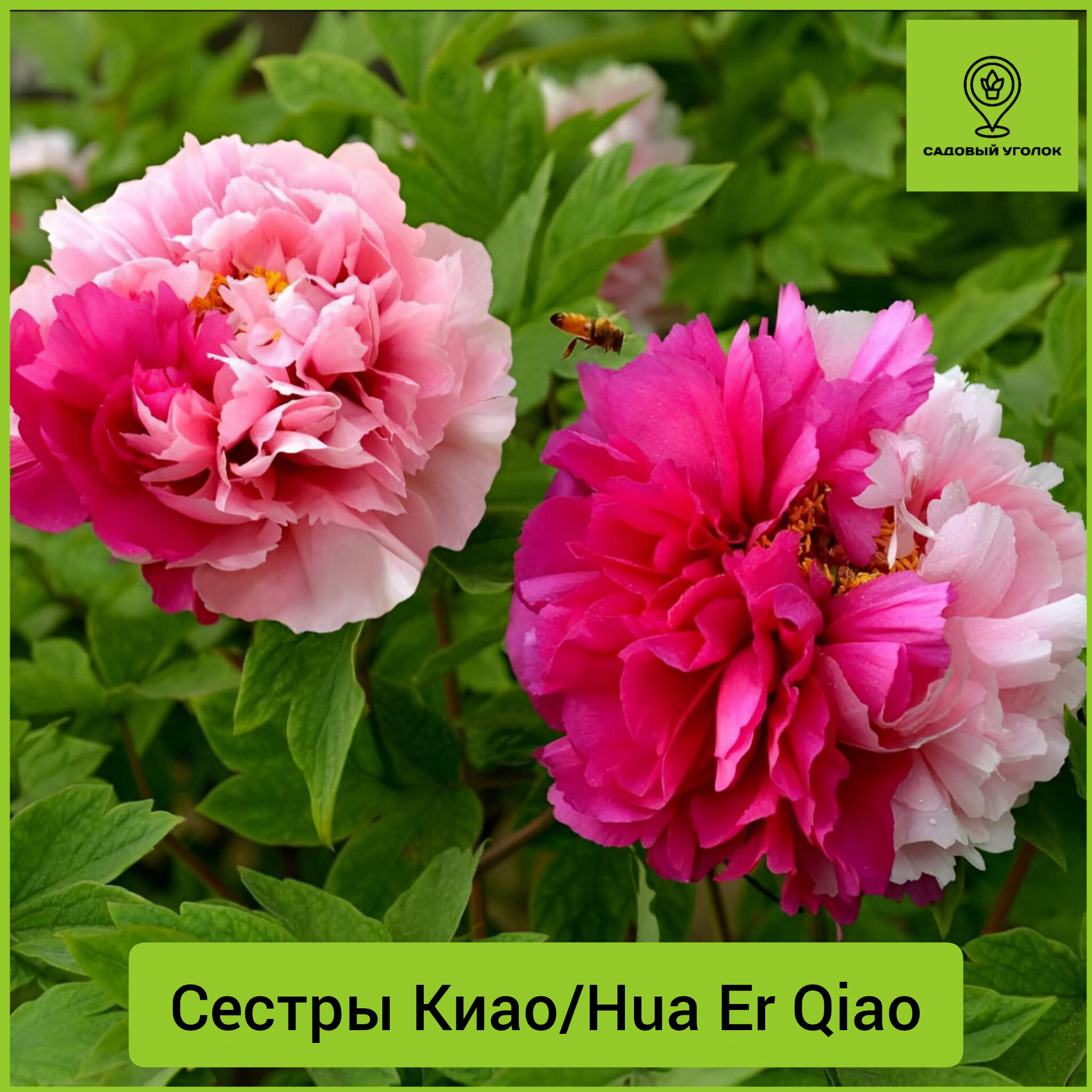 Пион "Хуа эр цяо", также известный как "Двойная красавица", родом из Китая. Он отличается махровыми или полумахровыми, ароматными, розовидными цветками (16 x 6 см), двухцветными (пурпурно-красными и розовыми на одном растении или ветке и цветке). Лепестки гладкие, с закругленными, бахромчатыми краями. Этот сильнорослый, высокий сорт имеет довольно тонкие ветви. Максимальная высота составляет 150 см. Период цветения умеренный.
