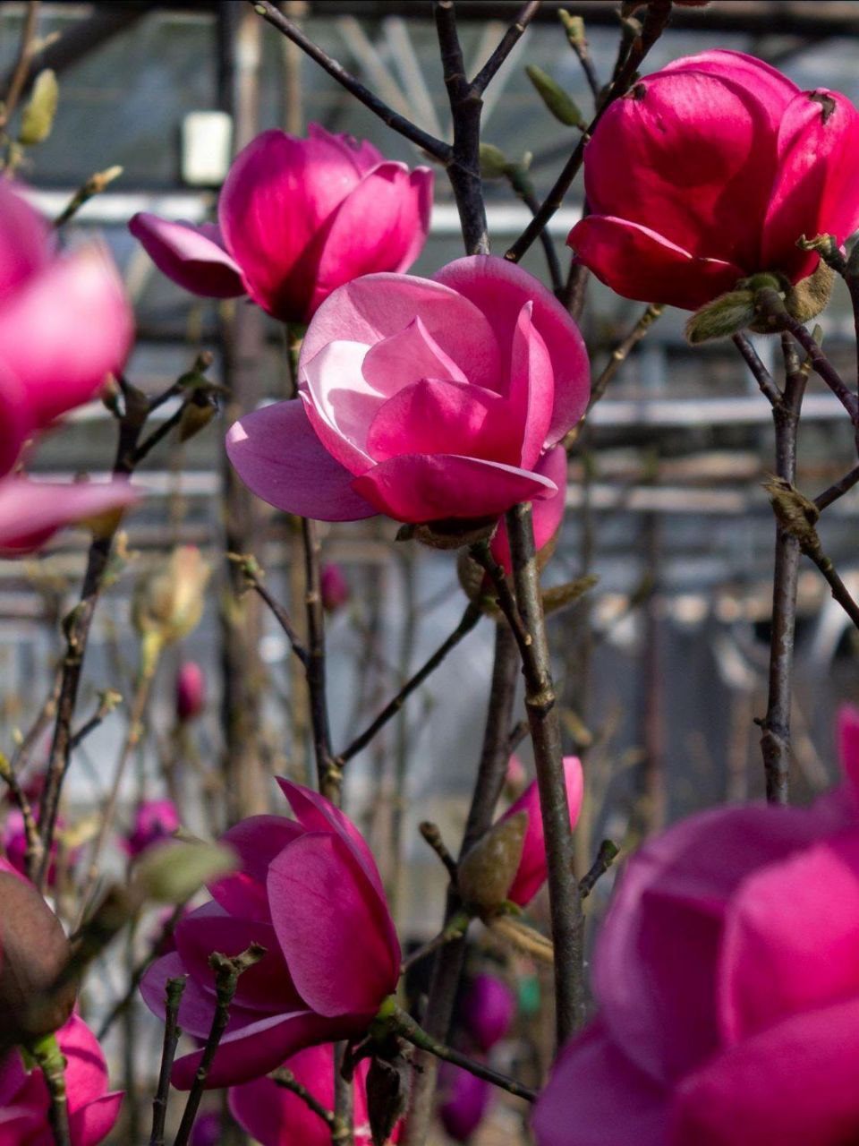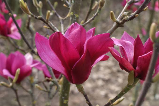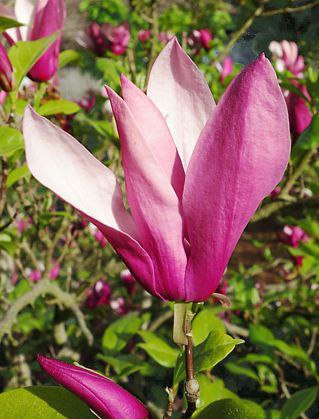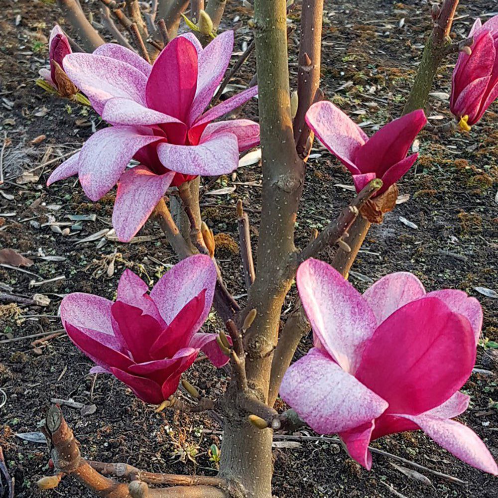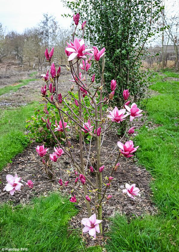 Компактная тюльпановидная магнолия, это гибрид, который со временем может достигать 4 метров в высоту и 2,5 метров в ширину. В начале-середине весны яркие чашевидные цветы с лепестками, которые розовые внутри и красновато-фиолетовые снаружи, краснея до ярко-розового цвета, раскрываются почти на каждом кончике ветки дерева Повторное цветение летом . Цветки диаметром до 20 см.