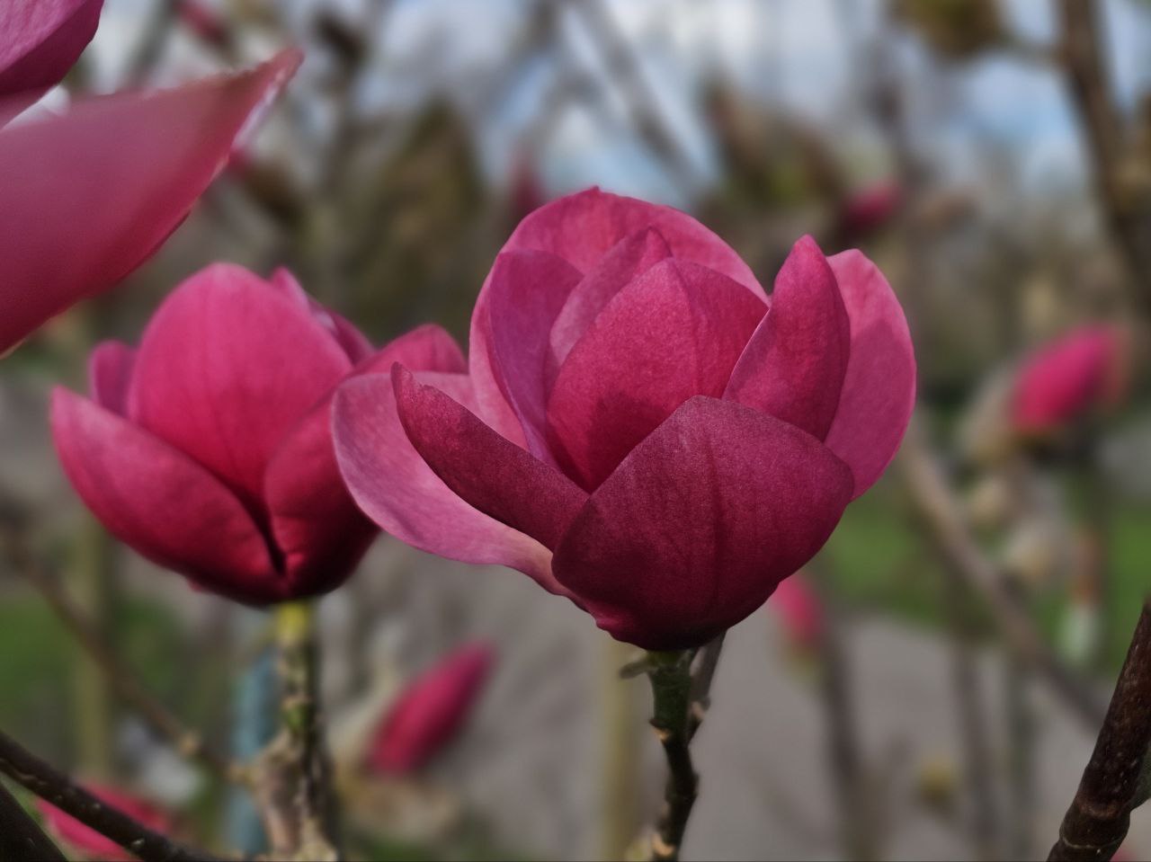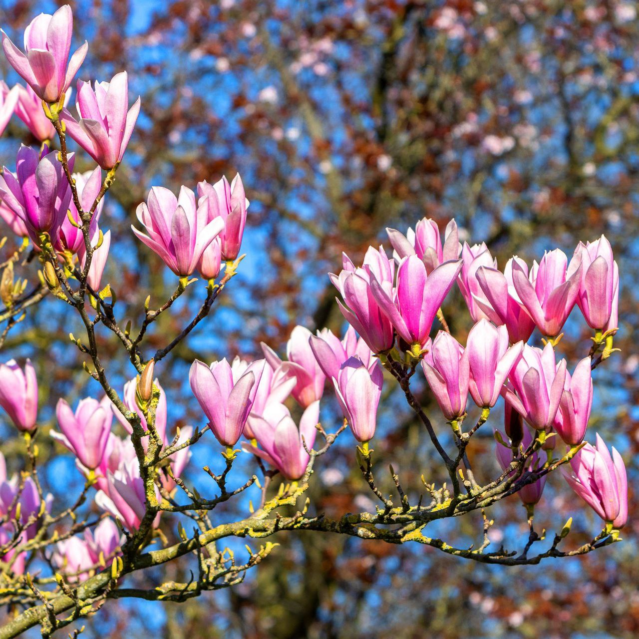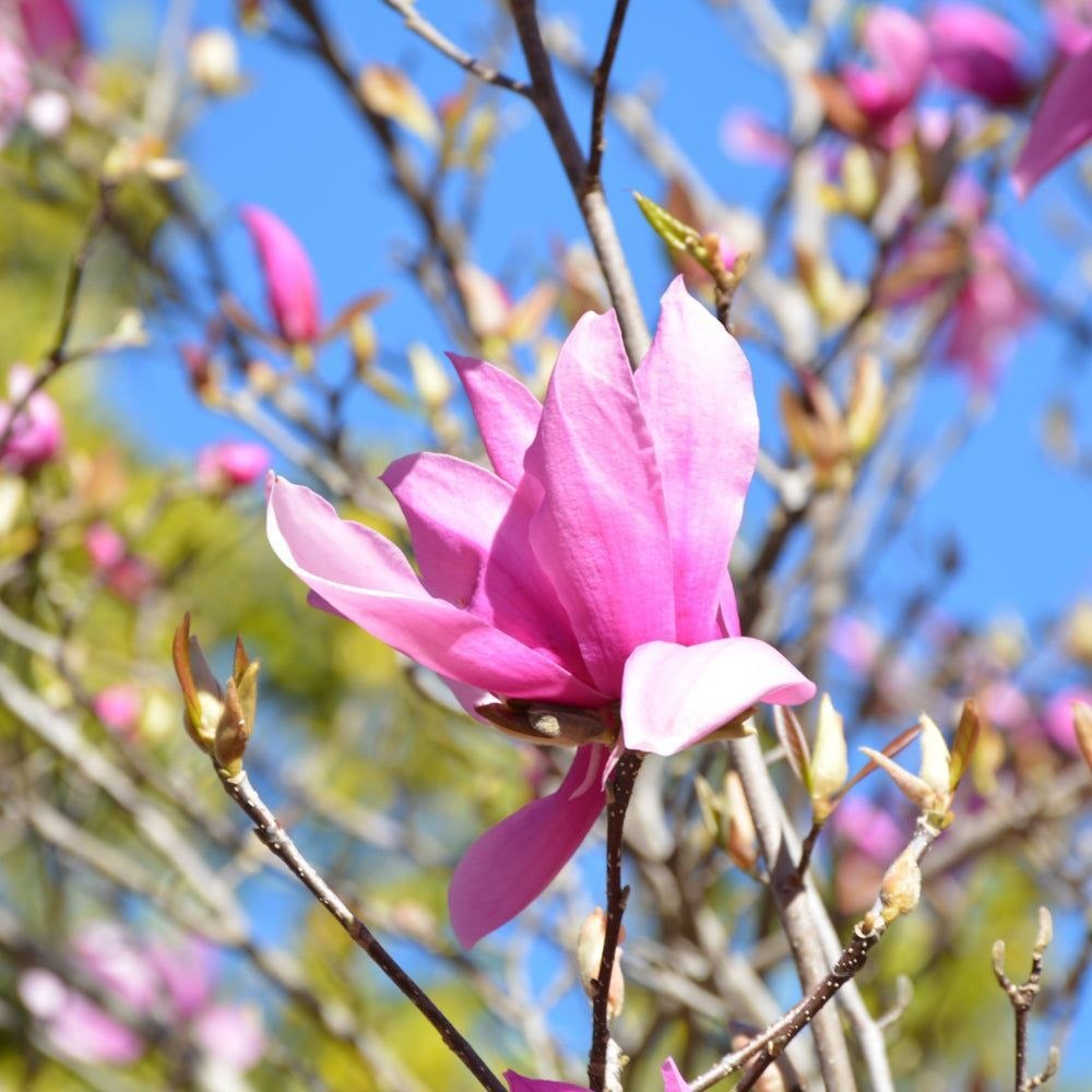 Компактная тюльпановидная магнолия, это гибрид, который со временем может достигать 4 метров в высоту и 2,5 метров в ширину. В начале-середине весны яркие чашевидные цветы с лепестками, которые розовые внутри и красновато-фиолетовые снаружи, краснея до ярко-розового цвета, раскрываются почти на каждом кончике ветки дерева Повторное цветение летом . Цветки диаметром до 20 см.