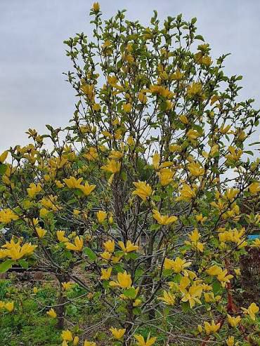 Несмотря на то, что сорт относительно новый и выведен в 2000 году, он уже успел себя зарекомендовать Эта магнолия с поздним сроком цветения, поэтому ей не страшны поздние весенние заморозки. Считается, что основным достоинством этого сорта является небольшой рост – он растёт как крупный куст, за 10 лет достигает 2,5 метра. Цветки большие яркой жёлтой окраски до 10 см диаметром, появляются практически одновременно с листвой. Очень многочисленные и яркие из всех известных желтых. Листья зеленые, широкие, правильной формы, среднего размера.