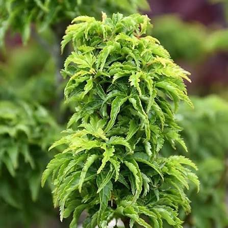 медленнорастущий, компактный японский клен, славящийся своей густой, прямостоячей кроной и уникальными скрученными темно-зелеными листьями, которые осенью становятся ярко-оранжевыми/красными. Достигает 2-3 м в высоту, идеально подходит для малых садов и контейнеров. Предпочитает полутень и влажную, хорошо дренированную почву